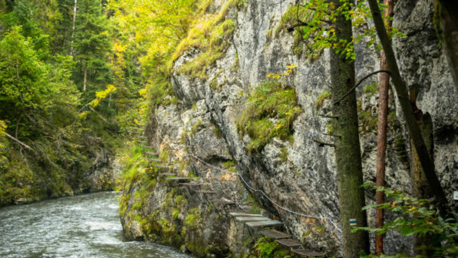 Some hiking trails in Slovak Paradise involve climbing ladders directly next to waterfalls.